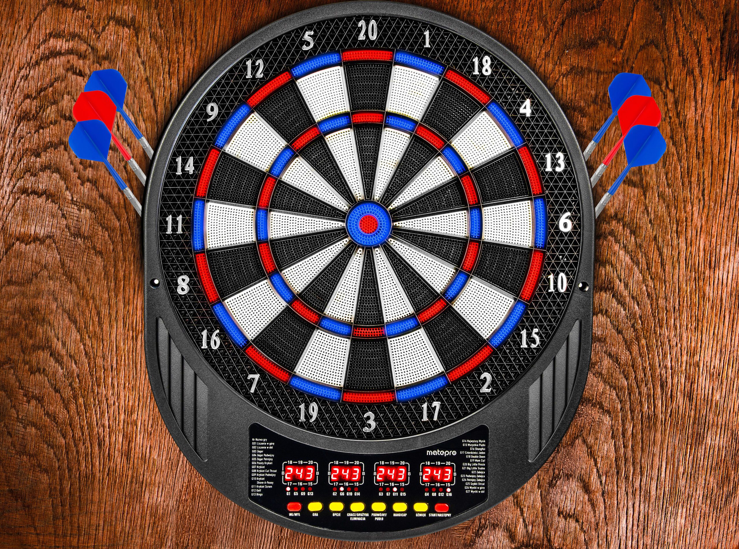 Elektroniczna tarcza MatePro MAGNUM to idealne rozwiązanie dla miłośników gry w darta, które łączy nowoczesne technologie z wyjątkową trwałością. Dzięki zintegrowanym lotkom o zwiększonej odporności na złamanie, 4 energooszczędnym wyświetlaczom LED oraz elastycznemu materiałowi tarczy, model MAGNUM zapewnia długotrwałą satysfakcję z gry nawet dla większych grup graczy.
